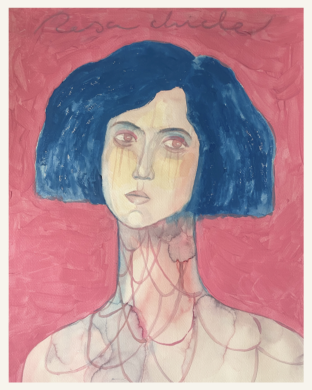 Pablo García, Alicante artist (b. 1979) exhibiting since age 10. Award-winning designer for 25 years, he resumed painting in 2021, creating the mixed media series "The Castaway's Wife."