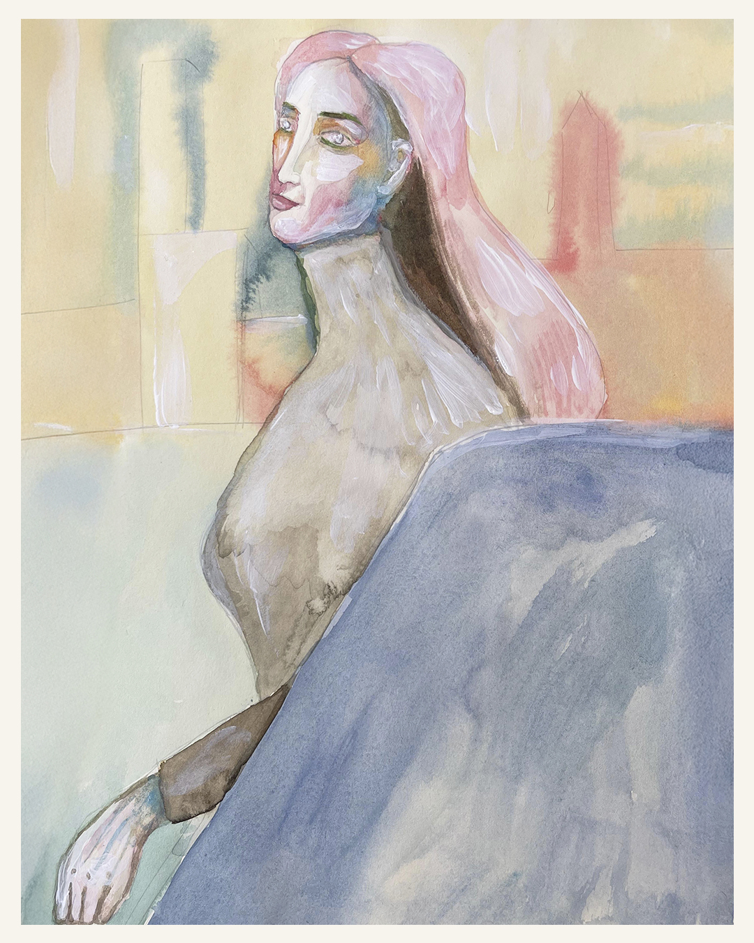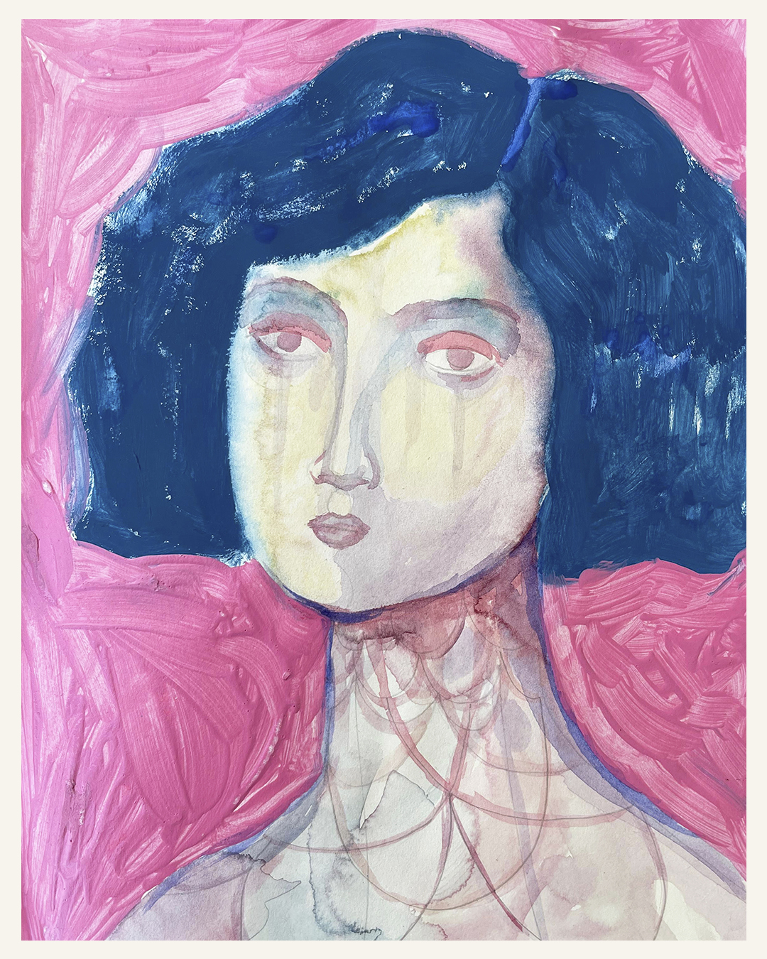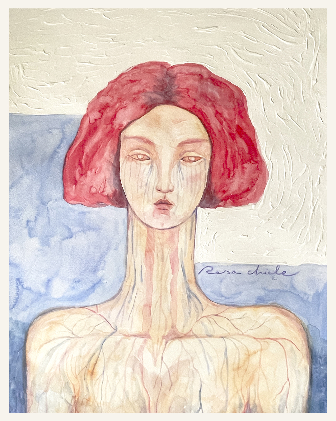 Pablo García, Alicante artist (b. 1979) exhibiting since age 10. Award-winning designer for 25 years, he resumed painting in 2021, creating the mixed media series "The Castaway's Wife."